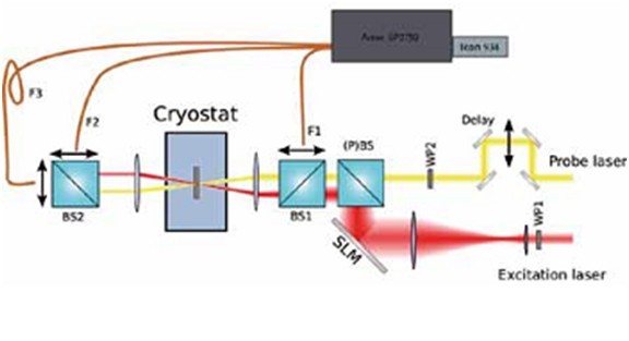 在實驗中采用脈沖鈦寶石激光器,空間光調(diào)制器,5K低溫制冷機,收集光路以及Andor SR750光譜儀以及 Andor DU934 深耗盡型CCD。在極化實驗中,為了能夠測試內(nèi)部空穴的特性,采用光纖收集反射或者透射的光。而在量子點的實驗中,收集的是量子點的發(fā)光。通過光纖,我們可以選擇不同的空間點進(jìn)行收集。