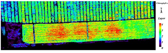 圖2 無人機(jī)高光譜影像作物葉綠素a分布