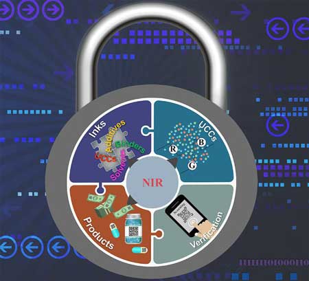 紅外上轉(zhuǎn)換材料還可以制作成無色油墨材料,做成特征圖案,例如印制成二維碼或者含有隱藏信息的復(fù)雜背景圖案,或者與其他防偽技術(shù)可以互相結(jié)合,可以大大增加防偽的力度。