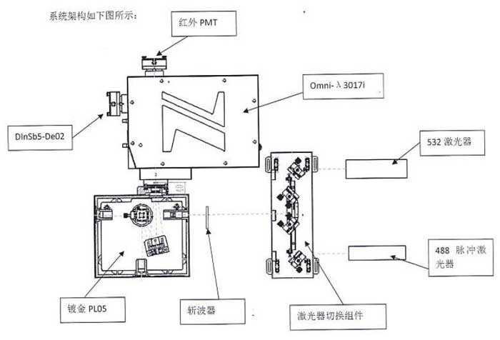 采用卓立漢光中紅外熒光測試系統,系統組成:980nm激光器、Omni-λ5015i影像校正型紅外單色儀、紅外鍍金反射式樣品室、液氮制冷型InSb探測器(光譜響應范圍1-5.5um)。