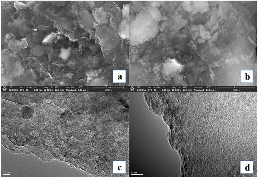 圖2 SC的SEM圖(降解前a和降解后b);TEM圖(c)和HRTEM圖(d)