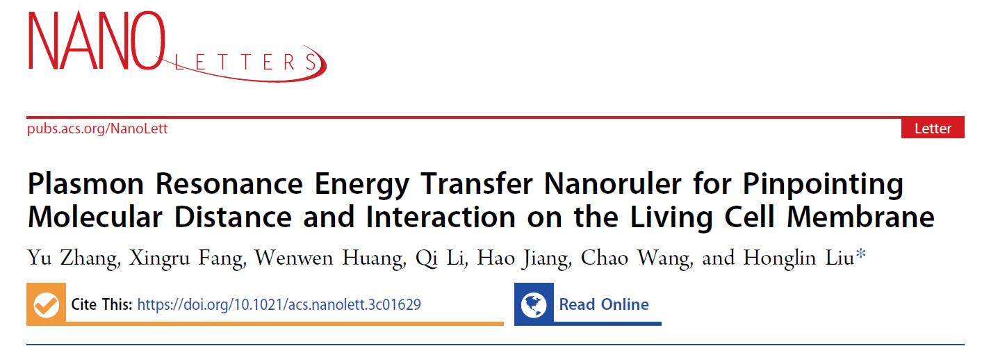 首先為大家?guī)韯⒔淌趫F隊有關細胞膜表面納米尺相關研究工作,該研究成果以“Plasmon Resonance Energy Transfer Nanoruler for Pinpointing Molecular Distance and Interaction on the Living Cell Membrane”為題發(fā)表在Nano letters 期刊中(doi.org/10.1021/acs.nanolett.3c01629)。