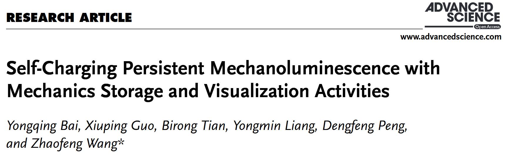 中國科學(xué)院蘭州化學(xué)物理研究所王趙鋒團(tuán)隊(duì)在國際知名期刊Advanced Science上發(fā)表的題為“Self‐charging persistent mechanoluminescence with mechanics storage and visualization activities”的研究論文。本文研制出一種自充能、可持續(xù)力致發(fā)光材料——Sr3Al2O5Cl2:Dy3+/PDMS(SAOCD/PDMS),該材料在力學(xué)的刺激下,無需預(yù)輻照即可產(chǎn)生明亮的長壽命力致發(fā)光,有效避免了此前材料在使用時(shí)的預(yù)輻照需求,極大提升了長壽命力致發(fā)光材料的應(yīng)用便利性。