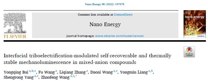 中國科學(xué)院蘭州化學(xué)物理研究所王趙鋒研究員團隊在國際知名期刊Nano energy上發(fā)表了題為“Interfacial triboelectrification-modulated self-recoverable and thermally stable mechanoluminescence in mixed-anion compounds” 的研究論文。該文章通過有機-無機復(fù)合策略制備了具有自恢復(fù)性能的非壓電ML材料Sr3Al2O5Cl2:Ln (SAOCL;Ln = Eu2+, Tb3+, Ce3+)/PDMS,并首次提出摩擦電場誘導(dǎo)電子轟擊模型解釋這一力致發(fā)光現(xiàn)象。