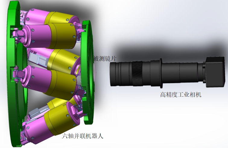 調(diào)整機(jī)構(gòu):調(diào)整工業(yè)相機(jī)、被測(cè)鏡片、分辨率測(cè)試圖案的相對(duì)機(jī)構(gòu)。在本方案中使用六軸并聯(lián)機(jī)器人來(lái)完成。