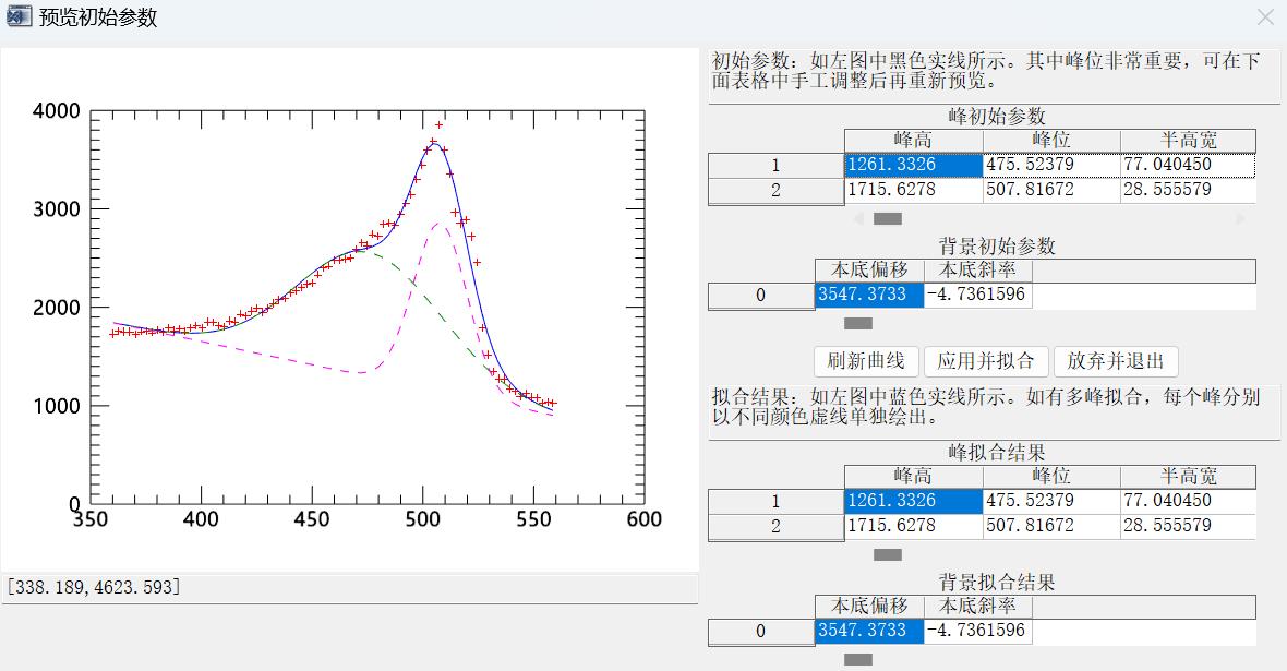 卓立漢光自主開發(fā)了晶化率自動計(jì)算軟件,可以實(shí)現(xiàn)自動分峰擬合和晶化率計(jì)算,軟件操作簡單,易于使用,晶化率擬合結(jié)果如圖2所示,自動計(jì)算結(jié)果可知晶化率為33.52%.