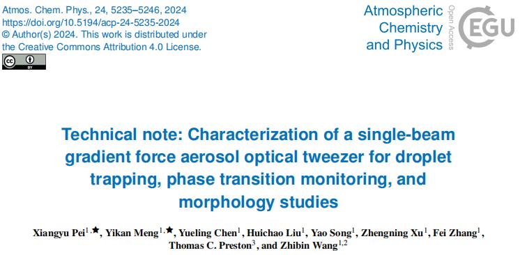 分享一篇來自浙江大學裴祥宇團隊的新研究成果,本文以“Technical note: Characterization of a single-beam gradient force aerosol optical tweezer for droplet trapping, phase transition monitoring, and morphology studies”為題發(fā)表于期刊Atmospheric Chemistry and Physics,原文鏈接:https://doi.org/10.5194/acp-24-5235-2024 浙江大學裴祥宇老師為共同第一作者。希望對您的科學研究或工業(yè)生產(chǎn)帶來一些靈感和啟發(fā)。
