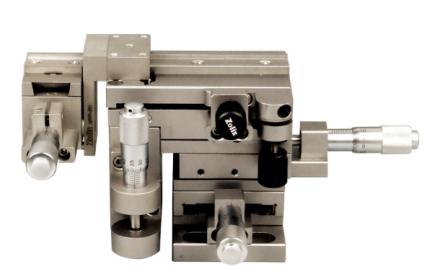隨著光通信的大力發(fā)展,光纖、波導(dǎo)等器件的應(yīng)用越來(lái)越廣泛,各種光纖有源、無(wú)源器件的生產(chǎn)、制備、加工等要求也越來(lái)越高。由于光纖的芯徑較小,所以在進(jìn)行耦合、連接時(shí),操作的設(shè)備需要有較高的靈敏度和穩(wěn)定性。卓立漢光一直以來(lái)致力于光纖耦合設(shè)備的研究,包括:光纖耦合過(guò)程中高精密的滑臺(tái)組件、各種光器件的夾持組件、以及其他配套附件產(chǎn)品等。下圖為典型的“光纖-光波導(dǎo)-光纖”的手動(dòng)耦合案例