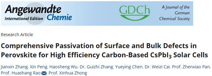 碳基鈣鈦礦太陽電池(C-PSC)兼具穩(wěn)定性和低成本的優(yōu)勢,是一種高性價比的光伏技術(shù)。然而,較低的效率是其商業(yè)化應(yīng)用的一大障礙。在制備過程中,鈣鈦礦薄膜不可避免地會產(chǎn)生缺陷,這些缺陷普遍存在于鈣鈦礦的表面和體相中,它們充當(dāng)載流子的復(fù)合中心,導(dǎo)致非輻射復(fù)合損失,*終降低了電池效率和穩(wěn)定性。因此,有效的缺陷鈍化策略是提高電池性能的關(guān)鍵。
