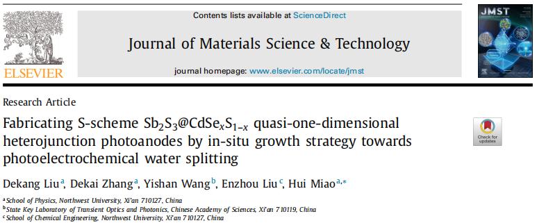 分享一篇來(lái)自西北大學(xué)苗慧團(tuán)隊(duì)的新研究成果,本文以“通過(guò)原位生長(zhǎng)制備用于光電化學(xué)水解的S型Sb2S3@CdSexS1-x準(zhǔn)一維異質(zhì)結(jié)光電陽(yáng)極”為題發(fā)表于期刊Journal of Materials Science & Technology,原文鏈接:https://doi.org/10.1016/j.jmst.2024.02.049 希望對(duì)您的科學(xué)研究或工業(yè)生產(chǎn)帶來(lái)一些靈感和啟發(fā)。