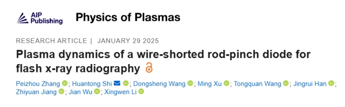 近日,西安交通大學電氣工程學院Z箍縮及應用研究中心團隊在金屬絲短接的低阻抗桿箍縮二極管等離子體動力學診斷方面取得進展,研究成果以“Plasma dynamics of a wire-shorted rod-pinch diode for flash x-ray radiography”為題發(fā)表在國際期刊Physics of Plasmas上。西安交通大學電工材料電氣絕緣全國重點實驗室為該論文第一單位,張沛洲博士研究生為第一作者,石桓通副教授為通訊作者。今天小卓為大家分享該研究成果,希望對您在等離子體診斷相關研究或工業(yè)應用方面帶來一些靈感和啟發(fā)。