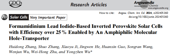相關成果以“基于兩親性分子空穴傳輸材料的甲酰胺鉛碘化物鈣鈦礦太陽能電池效率超過25%”為題發(fā)表于國際知名期刊Angew. Chem. Int. Ed.。原文鏈接:https://doi.org/10.1002/anie.202401260。希望該研究能為您的科學研究或工業(yè)生產帶來一些靈感和啟發(fā)。