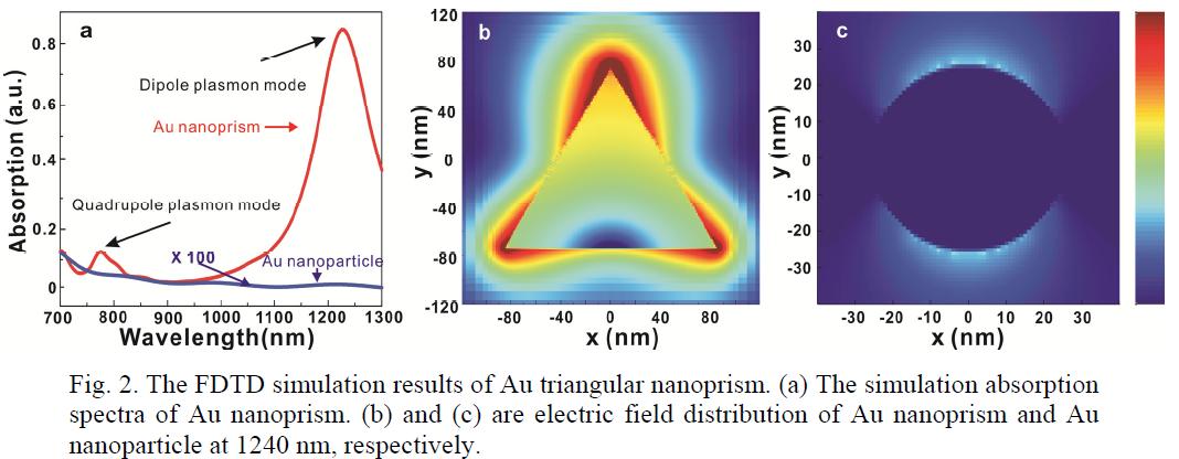 金三角納米棱柱在1240 nm波長處產(chǎn)生強(qiáng)偶極等離子體共振,尖端電場增強(qiáng)超55倍,局部態(tài)密度(LDOS)提升千倍,為非線性效應(yīng)提供“能量引擎”。