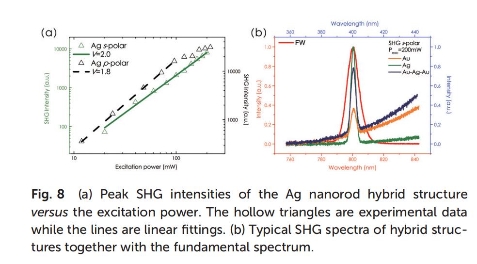 圖4. 原文中為圖8的Ag納米棒的SHG強(qiáng)度與激發(fā)功率的關(guān)系