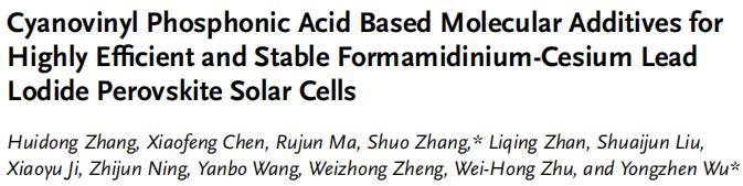 分享一篇來自華東理工大學(xué)吳永真團隊的新研究成果,本文以“Cyanovinyl Phosphonic Acid Based Molecular Additives for Highly Efficient and Stable Formamidinium-Cesium Lead Iodide Perovskite Solar Cells”為題發(fā)表于《Small》期刊,原文鏈接:https://doi.org/10.1002/smll.202501762。希望對您的科學(xué)研究或工業(yè)生產(chǎn)帶來一些靈感和啟發(fā)。