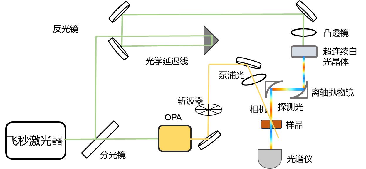 圖4、飛秒瞬態(tài)吸收光譜儀基本構(gòu)造示意圖