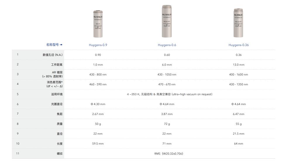 低溫兼容材料:在 2K 超低溫環(huán)境中,采用無氧銅或鈦合金鏡架,避免材料熱脹冷縮導(dǎo)致的光路漂移,同時(shí)支持物鏡的納米級(jí) Z 軸調(diào)節(jié)(如使用壓電陶瓷驅(qū)動(dòng))。同時(shí)物鏡建議采用低溫物鏡,我司對(duì)應(yīng)的型號(hào)如下。