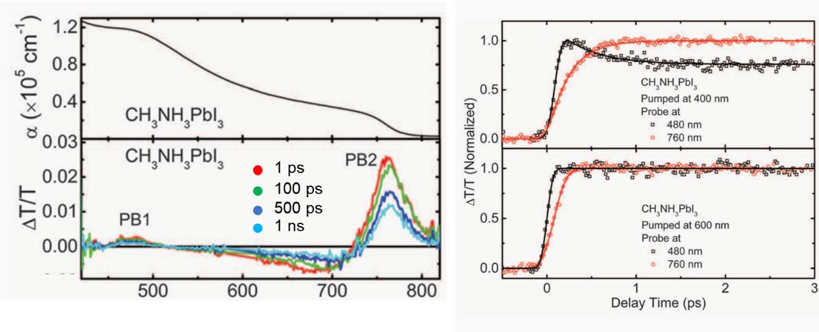 圖2、MAPbI3的光吸收與激發(fā)態(tài)產(chǎn)生的瞬態(tài)吸收7