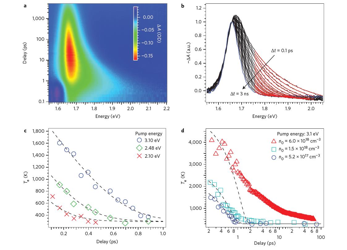 在光電半導體材料的研究中,光生載流子的微觀動力學過程是決定其宏觀光電性能的核心物理過程。光激發(fā)產(chǎn)生電子空穴對、以及其熱平衡、弛豫冷卻、復合、空間輸運等過程,對材料的光電性質(zhì)具有重要的影響。深入理解材料中的載流子動力學過程,對于設(shè)計高性能半導體光電器件具有至關(guān)重要意義。