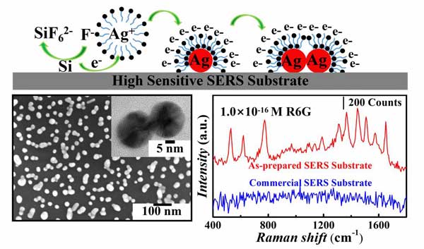 相關(guān)論文以“Ag Nano-Assemblies on Si Surface via CTAB-Assisted Galvanic Reaction for Sensitive and Reliable Surface-Enhanced Raman Scattering Detection”為題發(fā)表在Sensors and Actuators B: Chemical上,華南師范大學(xué)盧涵博士為文章的第一作者,華南師范大學(xué)金名亮研究員和華南師范大學(xué)水玲玲教授為共同通訊作者。