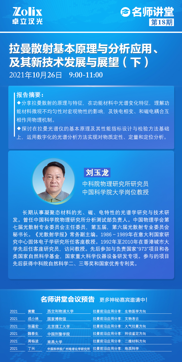 聚焦分子光譜、光電探測(cè)、高光譜與影像、超快光譜等前沿技術(shù)在材料、生醫(yī)、能源科學(xué)等熱門(mén)領(lǐng)域的前沿發(fā)展與應(yīng)用,卓立漢光邀請(qǐng)行業(yè)內(nèi)專(zhuān)家學(xué)者以網(wǎng)絡(luò)在線(xiàn)形式進(jìn)行學(xué)術(shù)探討與交流,為光電技術(shù)科研工作者建立全新、高效、開(kāi)放的學(xué)習(xí)與交流平臺(tái)。