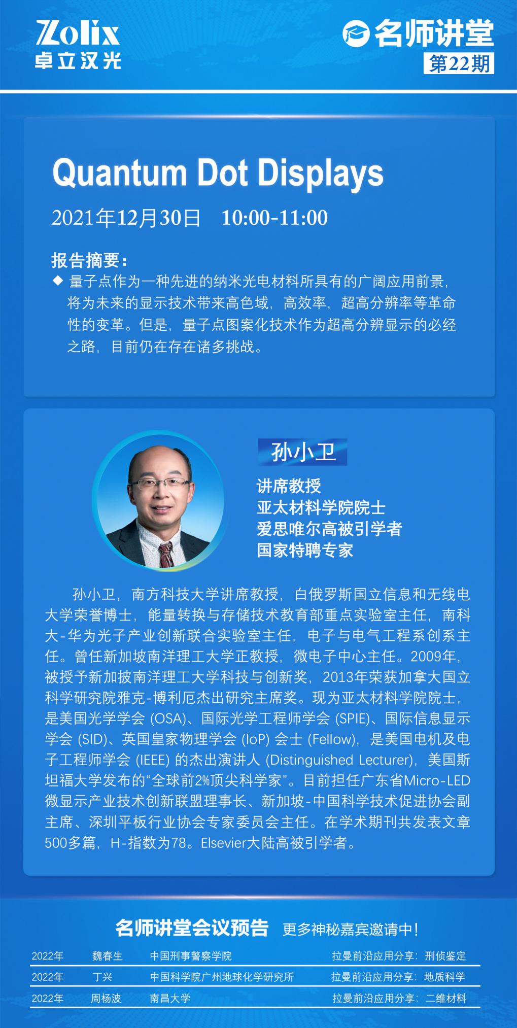 報(bào)告題目:Quantum Dots Displays