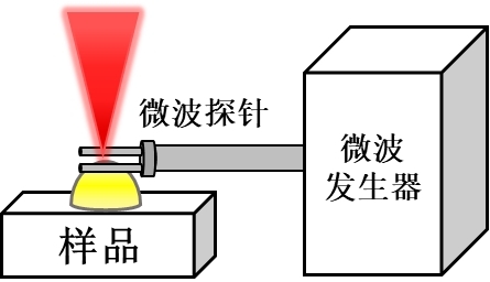 微波增強(qiáng)LIPS(Microwave-Assisted LIPS, MA-LIPS或MW-LIPS)是一種將微波探針產(chǎn)生的電磁能直接作用于激光誘導(dǎo)等離子體的LIPS信號(hào)增強(qiáng)技術(shù)。MA-LIPS在傳統(tǒng)LIPS系統(tǒng)中引入了微波發(fā)射系統(tǒng),微波發(fā)射系統(tǒng)可以產(chǎn)生高能量、高頻率的微波;在等離子體產(chǎn)生過(guò)程中,微波所攜帶的電磁能可以直接耦合進(jìn)等離子體中,通過(guò)對(duì)等離子體充能可以使等離子體溫度升高,導(dǎo)致內(nèi)部粒子碰撞加劇,從而提高等離子體輻射光譜強(qiáng)度,并將等離子體壽命從幾微秒延長(zhǎng)至幾百微秒[11]。微波增強(qiáng)LIPS裝置結(jié)構(gòu)如圖5所示。