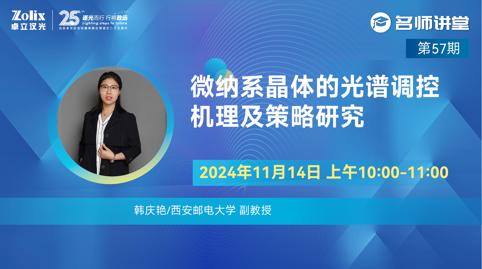 11月14日上午10:00—11:00,西安郵電大學副教授——韓慶艷為大家?guī)碇v座《微納系晶體的光譜調(diào)控機理及策略研究》。直播期間更有豐富好禮相送,歡迎屆時參加!