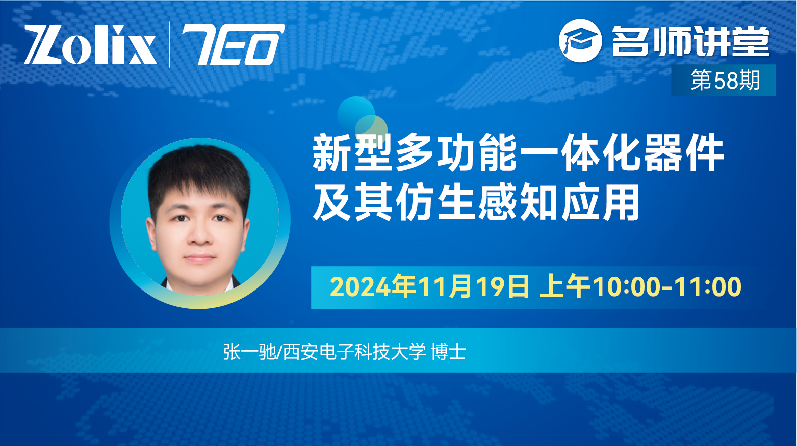 11月19日上午10:00—11:00,西安電子科技大學博士后——張一馳,為大家?guī)碇v座《新型多功能一體化器件及其仿生感知應(yīng)用》。直播期間更有豐富好禮相送,歡迎屆時參加!