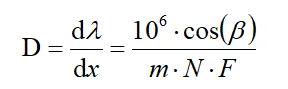 中心波長處線色散,主要體現(xiàn)了譜儀配合當前光柵在當前中心波長下的色散能力,由光柵方程延伸計算而來,它的定義為