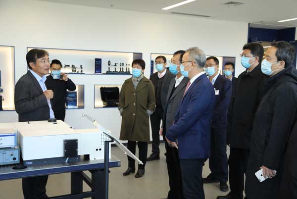 儀式結(jié)束后,懷柔區(qū)委書記、懷柔科學(xué)城黨工委書記戴彬彬和有研科技集團(tuán)有限公司董事長趙曉晨等領(lǐng)導(dǎo)及專家一行26人,蒞臨北京卓立漢光分析儀器有限公司參觀指導(dǎo),并詳細(xì)了解公司項目實施進(jìn)度及中長期發(fā)展規(guī)劃。北京卓立漢光儀器有限公司董事長、總經(jīng)理丁良成向到場的領(lǐng)導(dǎo)和專家,著重介紹了公司的研發(fā)生產(chǎn)現(xiàn)狀、優(yōu)勢產(chǎn)品市場及重點應(yīng)用發(fā)展方向。
