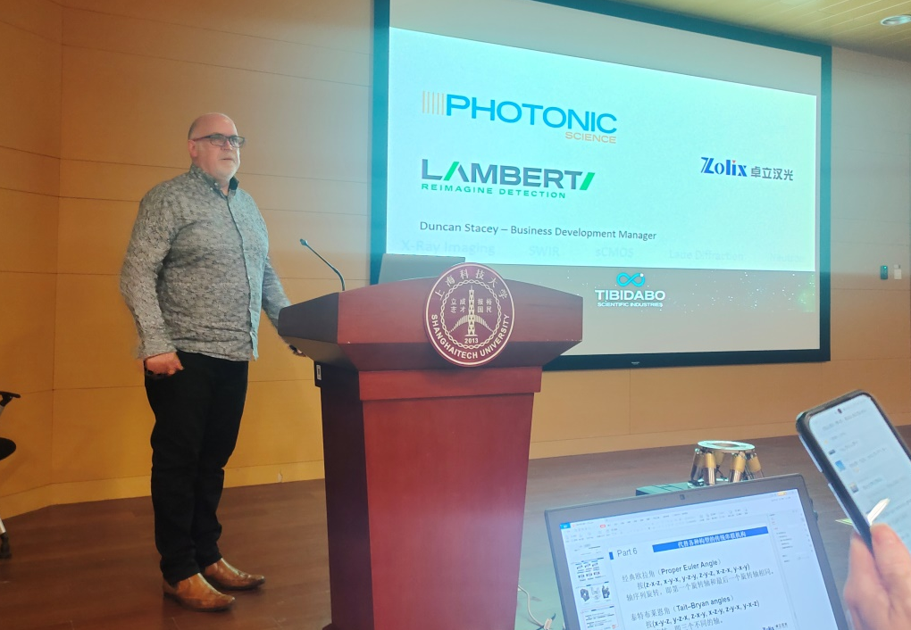 Photonic Science公司的Duncan Stacey 經(jīng)理為我們介紹PSEL成像類產(chǎn)品及勞厄定向系統(tǒng)報告。針對成像類產(chǎn)品,Duncan為我們主要分享了短波紅外相機(jī)和X射線相機(jī)的相關(guān)產(chǎn)品和應(yīng)用,并對勞厄定向系統(tǒng)的設(shè)備原理和結(jié)構(gòu)做了詳細(xì)介紹,分享應(yīng)用案例。此外Duncan 還就Lambert Instruments公司的產(chǎn)品做簡單介紹,包含熒光壽命成像顯微鏡、增強(qiáng)型高速相機(jī)及納米級時間分辨相機(jī)(ICMOS)。報告中也介紹了很有特色的SWIR短波紅外相機(jī),為我們展示了該類相機(jī)在生物弱光成像,夜視等各類方面的廣泛用途。