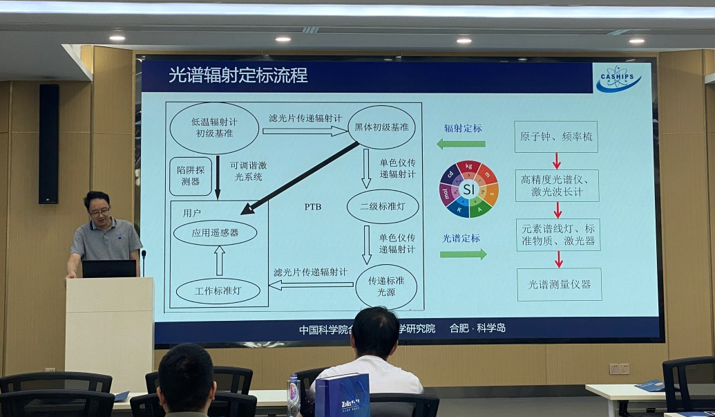 中國科學(xué)院安徽光學(xué)精密機械研究所李健軍做光電測量儀器實驗室定標(biāo)技術(shù)和應(yīng)用報告,為與會觀眾講解光電測量儀器在工業(yè)、農(nóng)業(yè)、林業(yè)等領(lǐng)域的應(yīng)用,并提出高精度光電檢測和校準(zhǔn)是定量應(yīng)用的前提,重點介紹了高精度黑體輻射源、相對光譜響應(yīng)度、基于標(biāo)準(zhǔn)傳遞探測器定標(biāo)溯源鏈路等校準(zhǔn)系統(tǒng),報告內(nèi)容豐富,精彩紛呈。