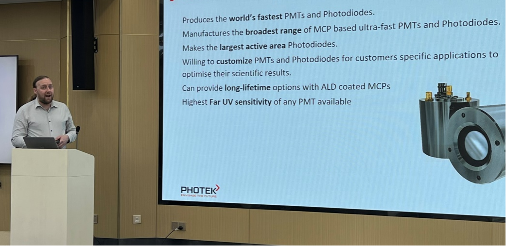 Photek公司銷售經(jīng)理Fenton Mann以及技術(shù)專家Thomas為大家介紹Photek真空離子探測器及弱光成像類產(chǎn)品。產(chǎn)品內(nèi)容豐富,也同時為觀眾帶來國外科研機構(gòu)采用Photek產(chǎn)品的應(yīng)用方案。