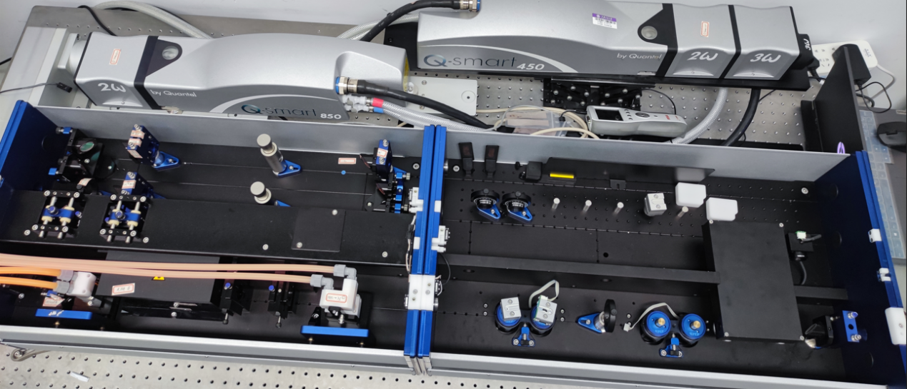 2016年起,李教授先后購買QSMART450燈泵YAG激光器和Qsan染料激光器。激光器早期放置在上海交通大學徐匯校區(qū)。2021年,新的實驗大樓啟用,客戶隨即開始搬遷工作。激光產品服務部張瑞寶部長在客戶搬遷后,安排調試并針對激光器的基本操作和日常維護,進行了專門的培訓。