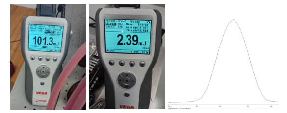 5月16日,楊建峰經理根據現場調試情況與張瑞寶部長以及其他服務部同事進行討論,*終確認故障點。事情后續(xù)進展相對就比較順利,5月17日主要安排常規(guī)調試,*終得到染料基頻輸出能量100mJ,3倍頻輸出能量可以達到2.6mJ。此結果與工廠測試參數基本一致。