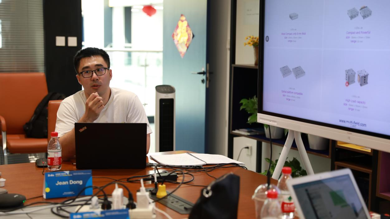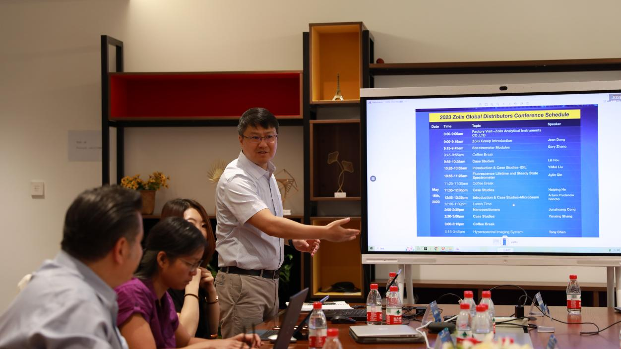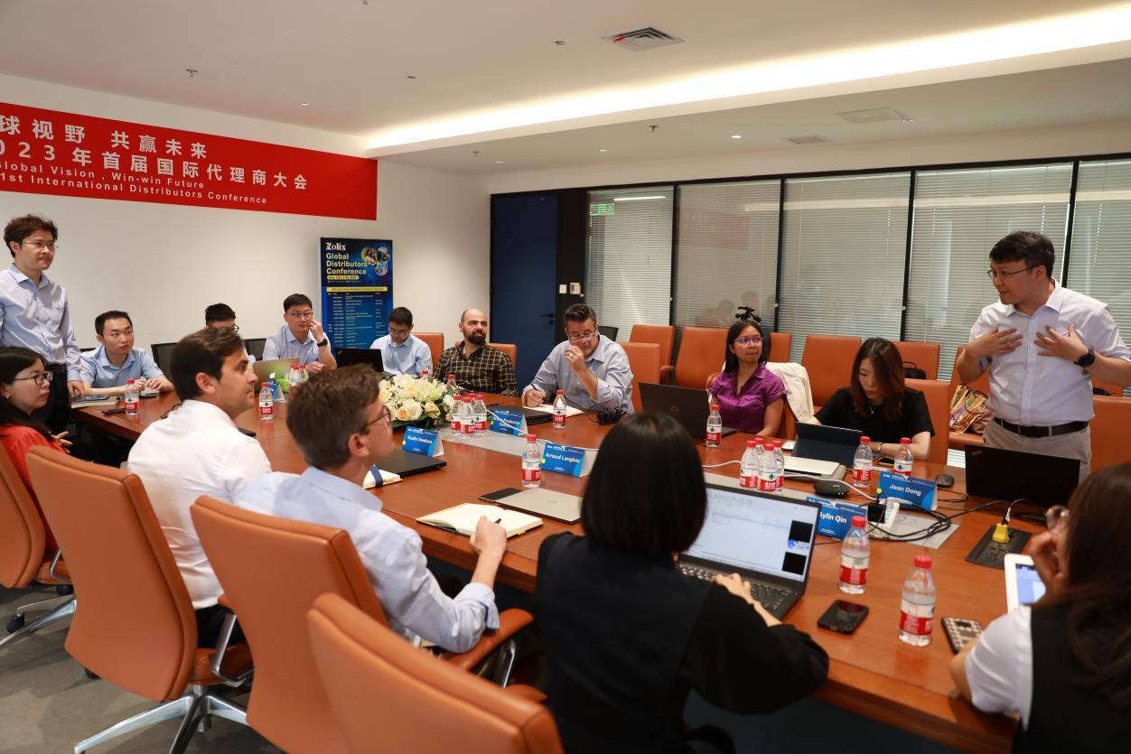 卓立漢光董磊副總經(jīng)理還帶著國際代理商和國內(nèi)產(chǎn)品用戶代表實(shí)地參觀了公司的研發(fā)中心與產(chǎn)品生產(chǎn)線,讓大家進(jìn)一步了解卓立漢光的產(chǎn)品品質(zhì),并且對(duì)產(chǎn)品和業(yè)務(wù)有了更深的了解與認(rèn)識(shí)。期間,業(yè)務(wù)發(fā)展部的專家們?yōu)楦鲊砩毯蛧鴥?nèi)產(chǎn)品用戶介紹了卓立漢光眾多自制產(chǎn)品線(包括主研制的光電模組、熒光、拉曼、光電探測(cè)、高光譜、光學(xué)機(jī)械與元件、納米壓電位移臺(tái)等)新產(chǎn)品新技術(shù),也互相交流了想法和經(jīng)驗(yàn),共同提升業(yè)務(wù)知識(shí)、探索全球市場(chǎng)。