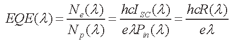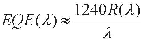 當(dāng)上式中波長單位為nm 時,外量子效率與光譜響應(yīng)有如下簡化公式。