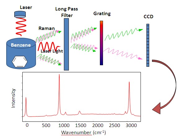 拉曼散射光譜是用于研究物質(zhì)結(jié)構(gòu)的分子光譜技術(shù),已有將近九十年的歷史。早在1923年,史梅耳(A. Smekal)便從理論上預(yù)言了入射單色光照射物質(zhì)的光波頻率發(fā)生改變的現(xiàn)象的存在。1928年,印度物理學(xué)家拉曼在研究液體苯的散射實(shí)驗(yàn)時(shí),發(fā)現(xiàn)散射光頻率改變現(xiàn)象,并用分子振動(dòng)能級(jí)與虛能級(jí)對(duì)這種散射現(xiàn)象進(jìn)行解釋,因而稱為拉曼散射。拉曼光譜是通過(guò)散射光的頻移量來(lái)獲得分子振動(dòng)、轉(zhuǎn)動(dòng)情況,從而分析分子的結(jié)構(gòu)、對(duì)稱性、電子環(huán)境和分子結(jié)合情況,是定量和定性分析物質(zhì)結(jié)構(gòu)的一種強(qiáng)有力的分析技術(shù)。