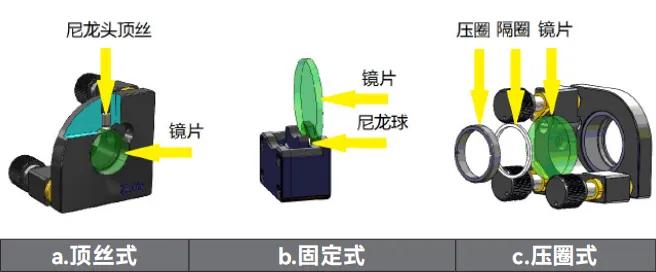 光學(xué)元件的夾持主要有:頂絲式、固定式和壓圈式(參見圖1)