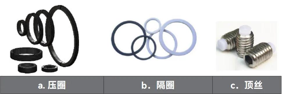 由于光學(xué)調(diào)整架的鎖緊大部分是通過鎖緊螺紋副來實(shí)現(xiàn),所以嚴(yán)格意義上,應(yīng)該屬于螺紋副的鎖緊。螺紋副的鎖緊,分為沿著運(yùn)動方向(軸向)鎖緊和垂直于運(yùn)動方向(徑向)鎖緊。軸向鎖緊和徑向鎖緊,基本上都是通過螺套的變形, 如 :抱緊、擠壓螺紋副而達(dá)到鎖緊的目的,卓立漢光部分常見的螺紋副鎖緊形式(參見圖10)。