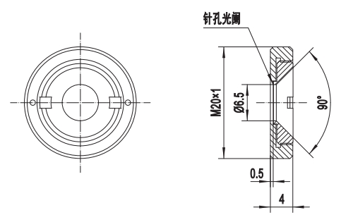 注:針孔光闌座為外螺紋(M20×1)安裝,采用壓圈卡緊針孔光闌。