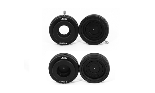· 材質(zhì):6061-T6鋁合金ZOLIX提供的可調(diào)光闌有撥桿式和旋轉(zhuǎn)式兩種,SM2螺紋接口僅有旋轉(zhuǎn)式。CDAD1-A為撥桿式可調(diào)光闌,可通過撥桿或者外圈滾花調(diào)節(jié)光闌孔徑;CDAD1-B/CDAD2-B為旋轉(zhuǎn)式可調(diào)光闌,僅能通過外圈滾花調(diào)節(jié)光闌孔徑。其中SM1螺紋接口的可調(diào)光闌,通光孔徑可調(diào)范圍在Ø1 mm~Ø12 mm之間。SM2螺紋接口的可調(diào)光闌,通光孔徑可調(diào)范圍在Ø1 mm~Ø25 mm之間。SM1螺紋可調(diào)光闌,外圓刻有分度刻線,用于進(jìn)行輔助調(diào)節(jié),其刻線參數(shù)僅供參考。所有可調(diào)光闌均為內(nèi)外螺紋結(jié)構(gòu)設(shè)計??烧{(diào)光闌一般用于控制光束直徑,其位置及通光孔的大小將直接影響整個光學(xué)系統(tǒng)的亮度、清晰度和像差等。