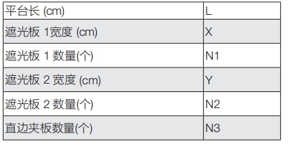 平臺單邊所需遮光板數(shù)量(N1、N2)及直邊夾板數(shù)量(N3)計算方法: