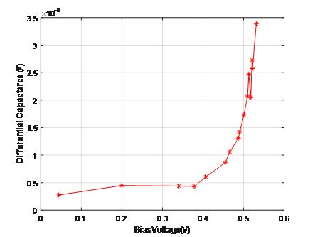 硅基太陽能電池器件微分電容和偏置光電壓的關(guān)系曲線