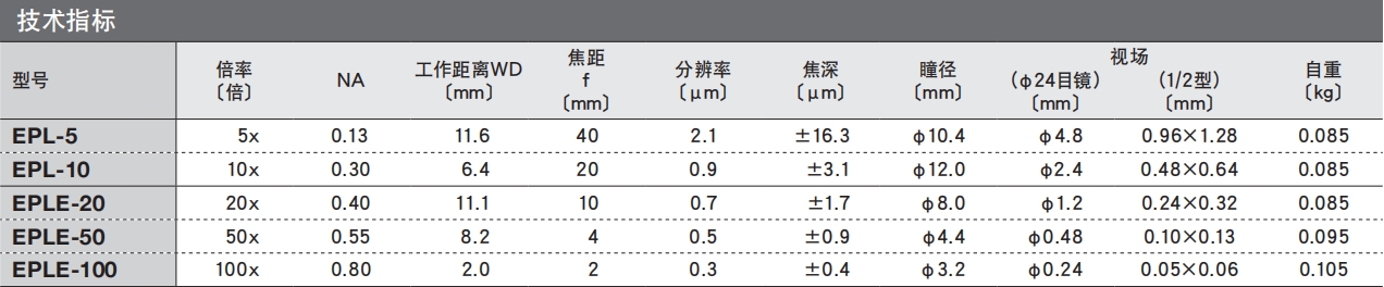 • EPL/EPLE物鏡結(jié)構(gòu)輕巧,用于自動對焦等,能夠提高物鏡動機構(gòu)(SFS-OBLSFAL-OBL)的響應(yīng)速度。