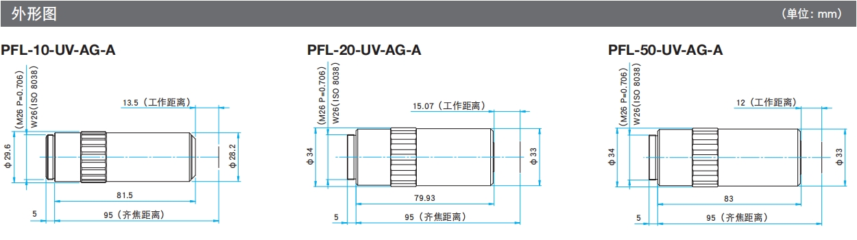 ?倍率為使用f=200mm管鏡時(shí)的數(shù)值。使用其他廠商生產(chǎn)的顯微鏡管鏡時(shí)倍率有可能不同。首先要確認(rèn)使用成像管鏡的焦距,從管鏡焦距和物鏡焦距的比例來(lái)求出實(shí)際倍率。