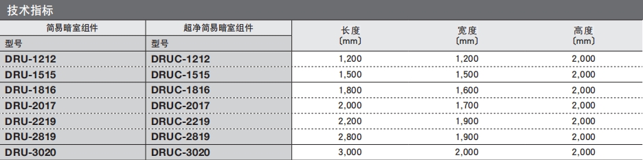 ?簡(jiǎn)易暗室組件由暗幕,管材,塑料錘組成。一般的組裝時(shí)間:(例)組裝DRU-1816約需要30分鐘(兩人)。