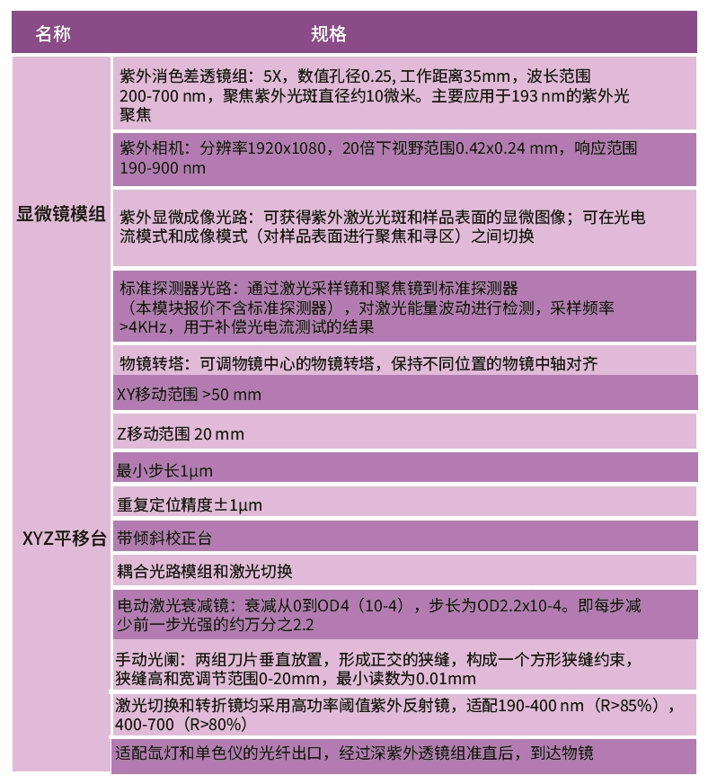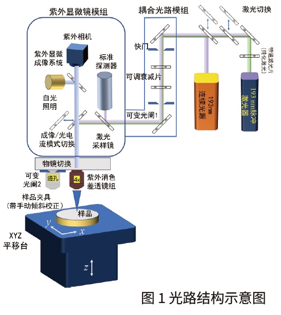 氙燈和單色儀通過光纖接口接入耦合光路模組,經(jīng)過深紫外透鏡組準(zhǔn)直后,到達(dá)物鏡后,聚焦到樣品表面,光斑直徑約200微米。
