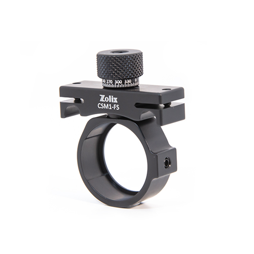 ZOLIX 旋轉(zhuǎn)快拆型安裝架兼容 30mm 籠式系統(tǒng),支持手動(dòng) 360° 旋轉(zhuǎn)光學(xué)元件。通過(guò)滾花旋鈕(或使用 5mm 內(nèi)六角扳手操作)可驅(qū)動(dòng)光學(xué)元件旋轉(zhuǎn),其安裝座的轉(zhuǎn)軸位置可通過(guò) M3 緊定螺釘鎖定。黑色旋鈕帶有 360°刻度線,并以 5°為細(xì)分單位提供精確角度指示。